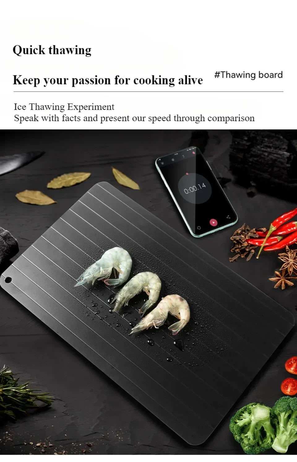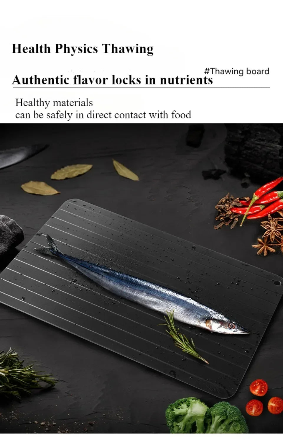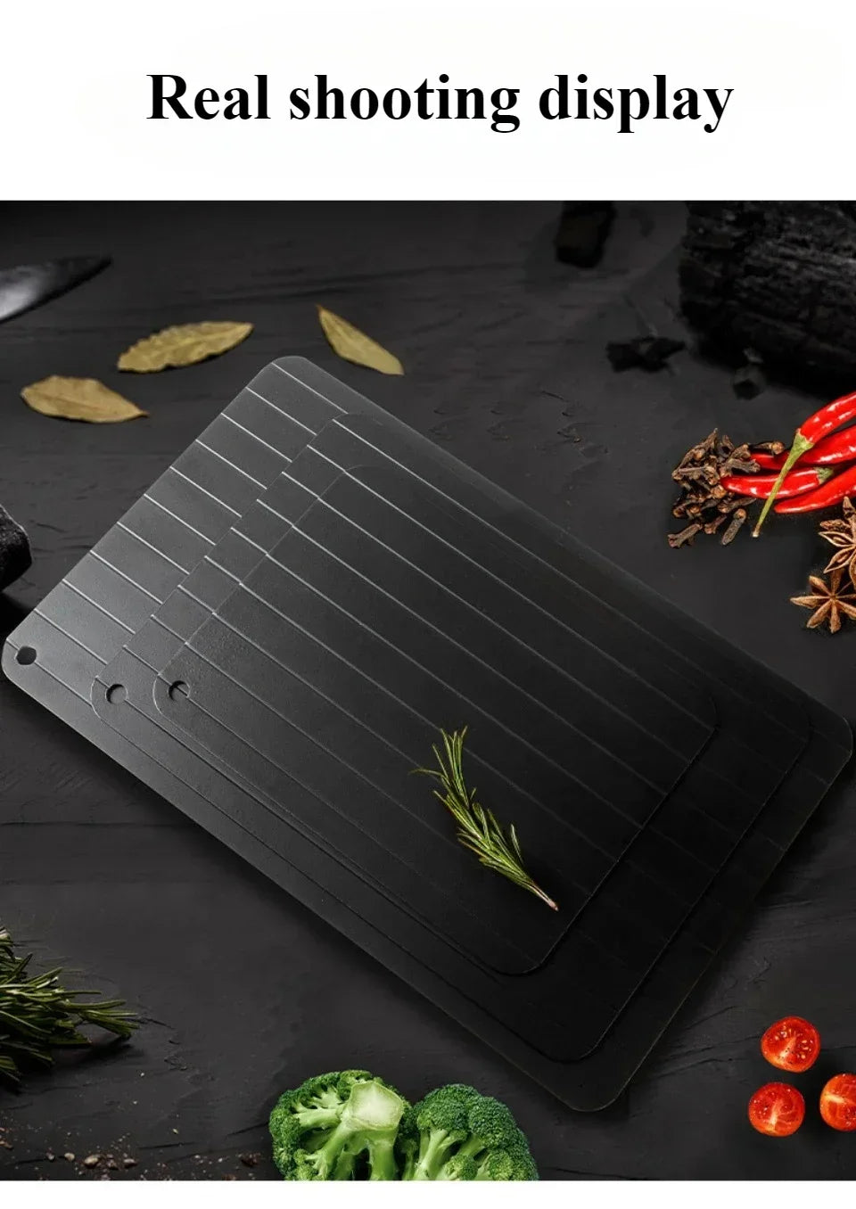The Quick Defrosting Plate Board is designed to rapidly thaw frozen food without the need for electricity or water. Crafted from a high-quality thermal conductive material, it accelerates the defrosting process for meat, fruit, and other frozen items, preserving texture and flavor. This durable kitchen gadget offers a safe, efficient, and eco-friendly alternative to traditional thawing methods, making meal preparation faster and more convenient. Ideal for any kitchen, it ensures food is ready to cook in minutes while maintaining quality and safety.