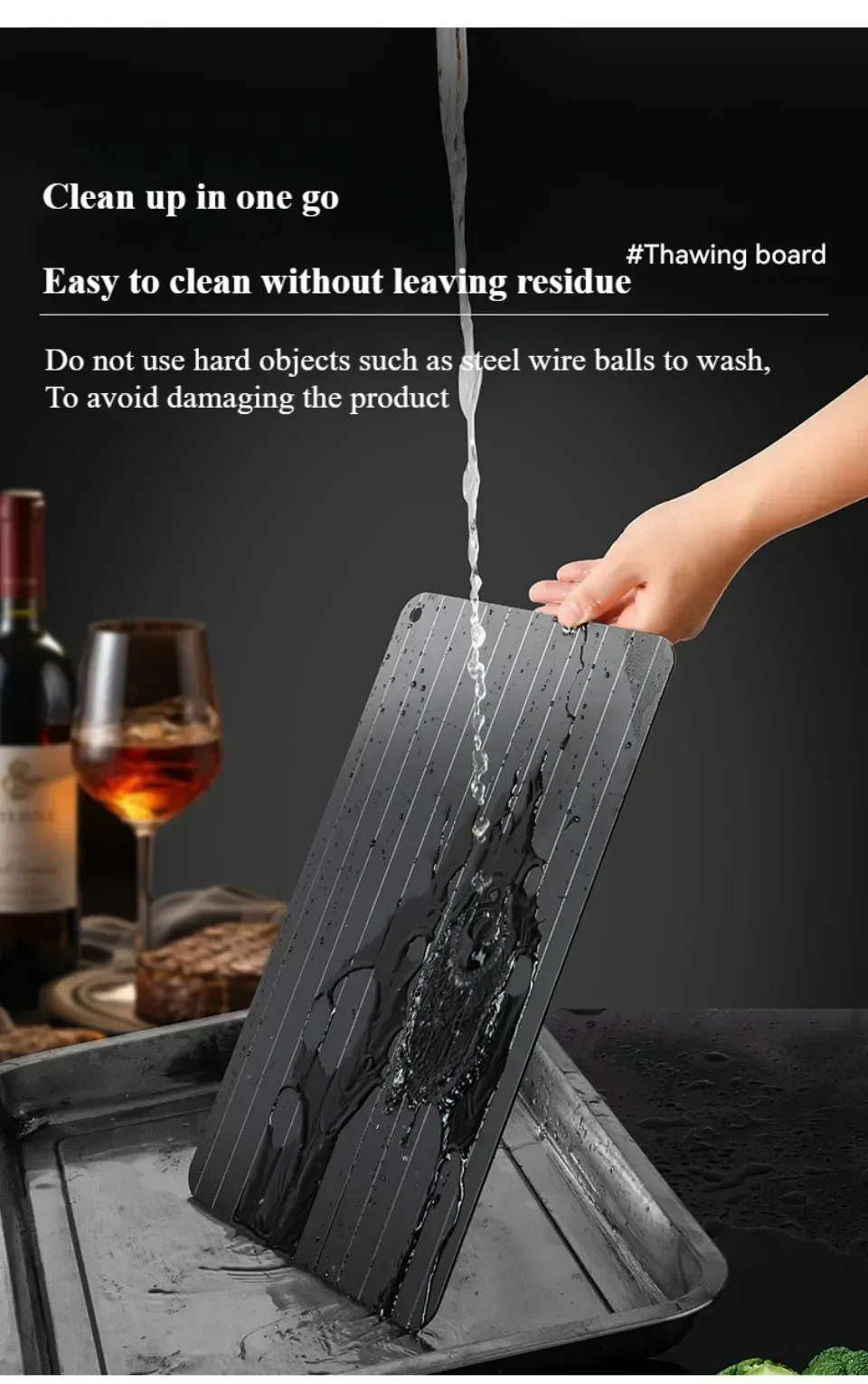 3.During the thawing process, the microwave used for cooking some food is different, and the tray safely and quickly thaws meat. The magical thawing tray remains cool throughout the entire use process, without the need for preheating or hot water.