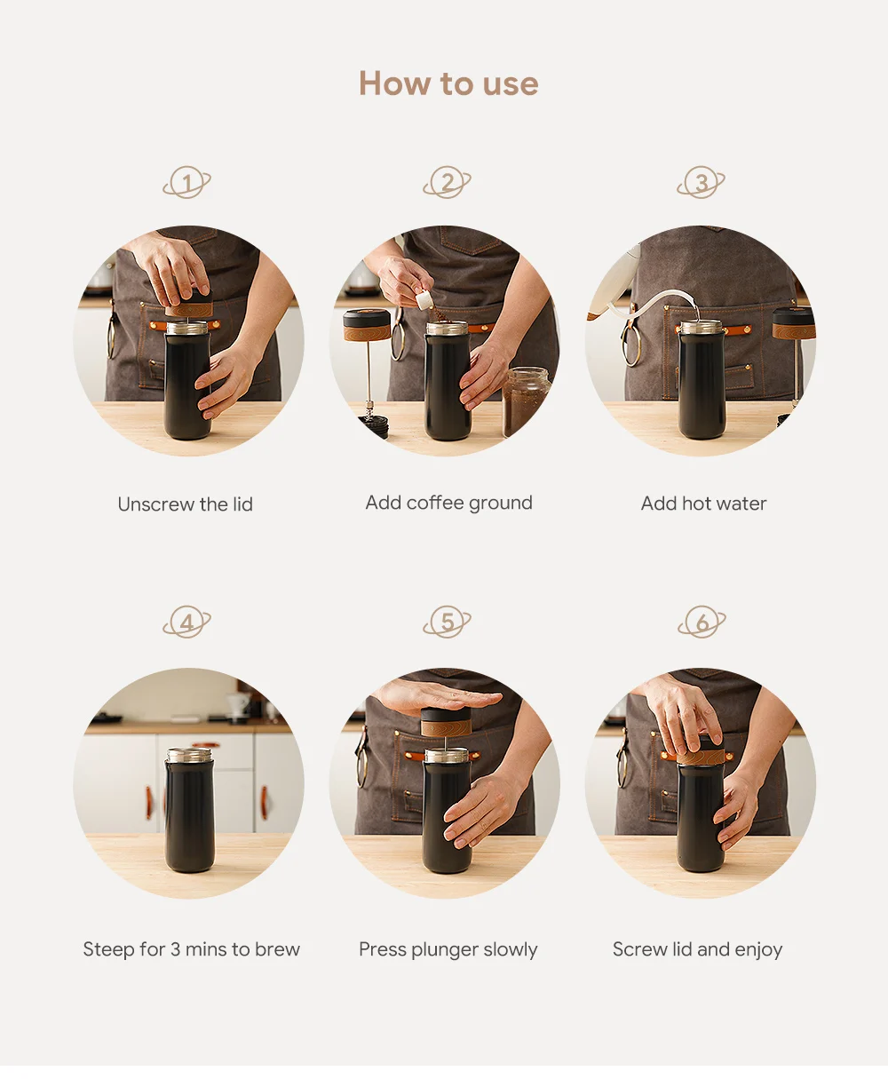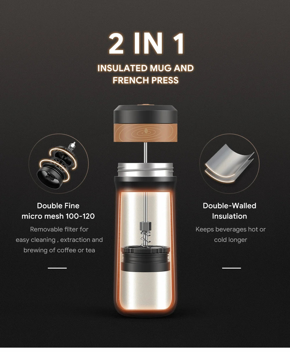 Experience the convenience of freshly brewed coffee anywhere with this Portable Stainless Steel Insulated Coffee Press. Designed for travel and outdoor use, it combines a French press and tea maker in one durable, insulated mug. Its stainless steel construction ensures heat retention and long-lasting performance, while the compact design fits easily in your car or backpack. Ideal for coffee enthusiasts on the go, this versatile coffee pot delivers rich flavor and temperature control wherever your adventures take you.