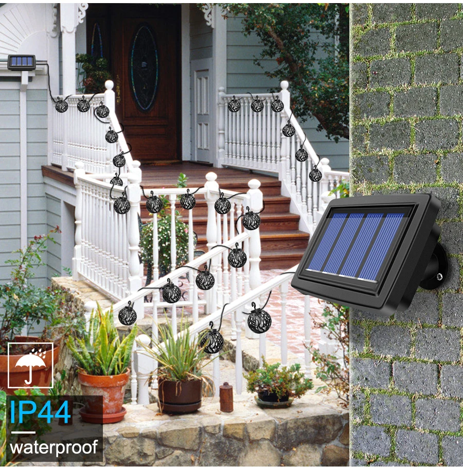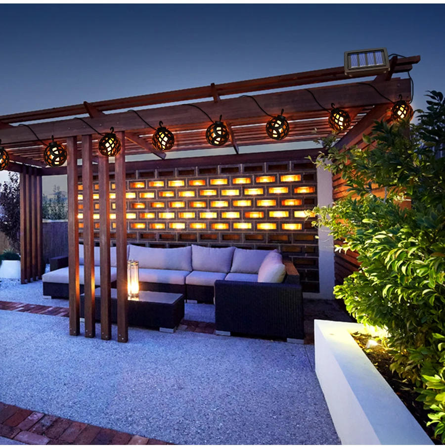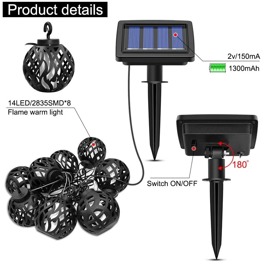 Solar String Lights LED Outdoor Waterproof Flickering Flame Hanging Solar Lantern Lamp with 8 Ball for Patio Garden Yard