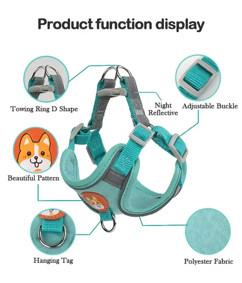 • Retractable Strap :Featuring a retractable strap, this harness vest allows for easy adjustment to ensure a perfect fit for your pet.