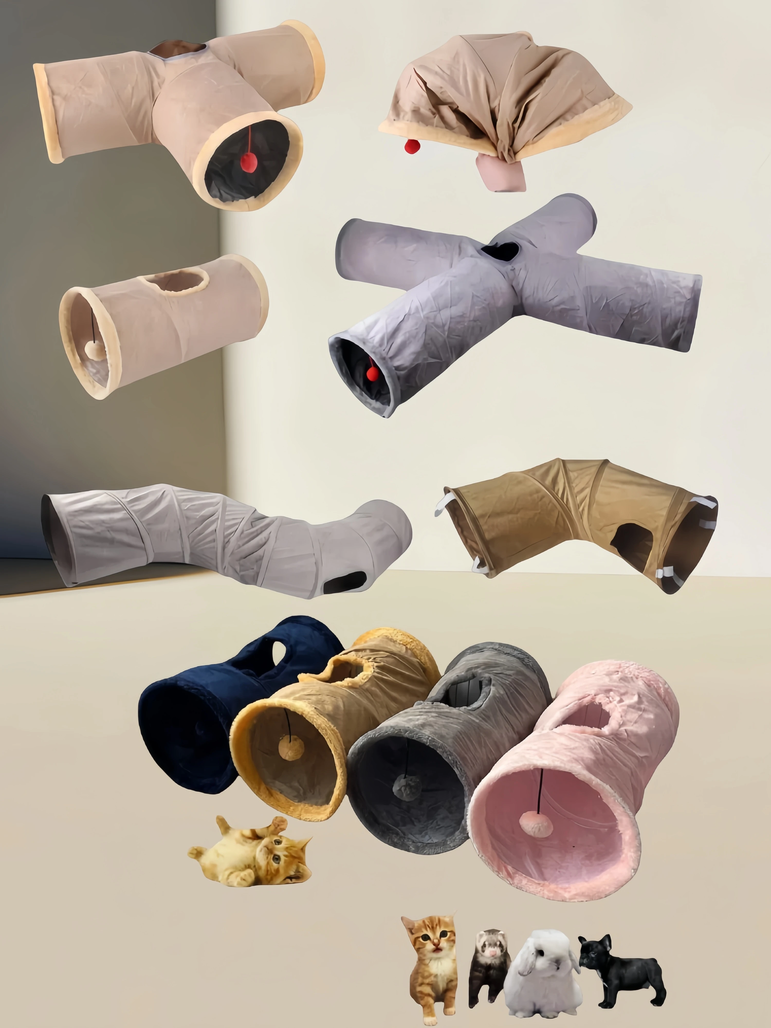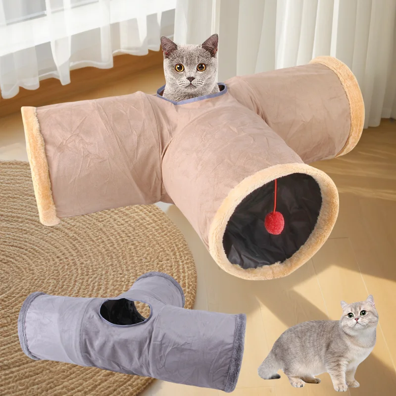 This collapsible winter tunnel, crafted from soft suede, offers a cozy and interactive play space for cats, puppies, rabbits, and kittens. Designed for versatile use, it can be configured in two or three-way layouts, encouraging natural chasing and hiding behaviors. Its durable yet comfortable material provides warmth during colder months, making it an ideal bedding and play solution that stimulates activity and curiosity in small pets.